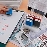 Self-Contained 6-Pack Stamp Set for Streamlined Workflow: Maximize efficiency with 6 pre-inked self-inking stamps: 4 red stamps dominate critical flows (RECEIVED, URGENT, RETURN TO SENDER, PAID) and 2 blue stamps handle documentation (DRAFT, COPY). Red covers 80% of daily tasks — log deliveries, flag rush items, process returns, confirm payments. Blue supports revisions and archiving. Durable Rubber Seals & Refillable Photo-Sensitive Ink System: Constructed with rubber for extended serive time. Each fully saturated ink chamber delivers 200+ crisp impressions (add 10+ drops of exclusive photo-sensitive ink). Refillable design supports 10,000+ lifetime uses. Snap-lock base caps seal ink from drying or leakage. CAUTION: Regular ink voids warranty! Ergonomic Mini Size + Organization-Ready Packaging: Individual stamp size (2.08×1.73×0.88 inch) fits in pockets, storage tray (4.13×4.13×2.6 inch) slots into bags. Includes free hanging strap for vertical desk/toolbox mounting. Top-labeled caps + test-print card guarantee instant phrase matching — no fumbling mid-task! Dual-Color Ink System, Precision Formulated for Professional Use: Red ink highlights urgency and results (URGENT/PAID/RECEIVED/RETURN TO SENDER), blue ink standardizes processes (COPY/DRAFT). Self-contained ink chambers enable one-press operation — no pads, no mess. Refill with photo-sensitive ink only. The stamps is protected with disposable sealing film. End-to-End Mail Hub Control: 1) RECEIVED → Log incoming packages. 2) URGENT → Flag time-sensitive mail. 3) RETURN TO SENDER → Process misaddressed items. 4) PAID → Stamp invoice batches. 5) DRAFT/COPY → Manage internal documents. Cut sorting time 45%.