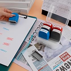 - Included in Your Set: 1 x "URGENT" Self-Inking Stamp (Red Ink) 1 x "PAID" Self-Inking Stamp (Red Ink) 1 x "RETURN TO SENDER" Self-Inking Stamp (Red Ink) 1 x "RECEIVED" Self-Inking Stamp (Red Ink) 1 x "DRAFT" Self-Inking Stamp (Blue Ink) 1 x "COPY" Self-Inking Stamp (Blue Ink) Product Advantages: 1. Oxygen-Locked Freshness with PE Seals Each stamp set is vacuum-sealed in PE bag, reducing air exposure by 99% versus standard packaging. This technology prevents ink drying during transit/storage, ensuring ready-to-use performance right out of the box. 2. Real-Impression Verification Card Every kit contains a card stamped with actual impressions from THIS set’s seals. Compare it to your expectations to instantly confirm: Phrase accuracy (e.g., "SCANNED" vs "SCANED") Ink saturation (no fading/smudging) Alignment integrity (zero ghosting) 3. Shrink Wrap for Pristine Presentation The case is wrapped in shrink film to: Block box scratches during logistics chaos Prevent adhesive residue from shipping labels Prevent getting wet — so your office purchase arrives ready for unboxing. 4. Pattern Label Top to Avoid Blind Grasping Efficiency Each stamp's top features a crisp decal showing its exact impression (e.g., "FAXED" icon). Combined with color-coded shells, locate the correct stamp in ≤2 seconds during mailroom rushes — no more fumbling through lookalikes! 5. Bottom Ridge Design for Secure Sealing A raised ridge around the base of each stamp creates firmer contact with the case lid. This simple but effective upgrade boosts closure grip by 200%, preventing lid separation during accidental knocks or drops. Keep your stamps safely contained and ink protected in busy office environments. 6. External Hanging Strap We include not one, but two nylon straps (random colors). Thread them through the case’s side slots to hang vertically on file carts, or desk partitions — transforming the kit into a mobile command center. Maintenance & Warnings: CRITICAL: USE PHOTO-SENSITIVE INK ONLY! 1. Initial Setup: Wipe excess ink from stamp pad edges with dry tissue (never sharp tools!) 2. Long-Term Storage: Regular maintenance: If not used for a long time, stamp 2x on paper to prevent oil film buildup Store vertically under normal temperature and humidity conditions, avoiding direct sunlight exposure. 3. Paper Compatibility: Optimal: 20-24 lb office paper (dries in 3-5s) Avoid: Thermal paper (causes smudging) / Glossy surfaces (requires 15s or more for drying) 4. Cleaning Protocol: Blot debris with dry microfiber cloth (Dust/foreign objects are present in certain areas of the pattern) Never use water/chemicals (degrades ink) 5. Ink Refilling: STEP 1: Add 3-5 drops of PHOTO-SENSITIVE ink to the pattern STEP 2: Wait 2 min for absorption (If absorbed quickly, repeat STEP1) STEP 3: Blot excess ink with tissue STEP 4: Test 5x on scrap paper