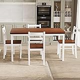 - Orweiin Solid Wood Dining Table Set for 4, Farmhouse Rectangular Table and 4 Chairs Set for Kitchen, Bar, Living Room, Breakfast Nook, Natural+White