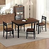 - Orweiin Black Dining Table Set for 4 - 43.3" Table and Chairs Set of 4 with Solid Wood Legs and Woven Rattan Backs, Kitchen Table Set for Small Space, Brown+Black
