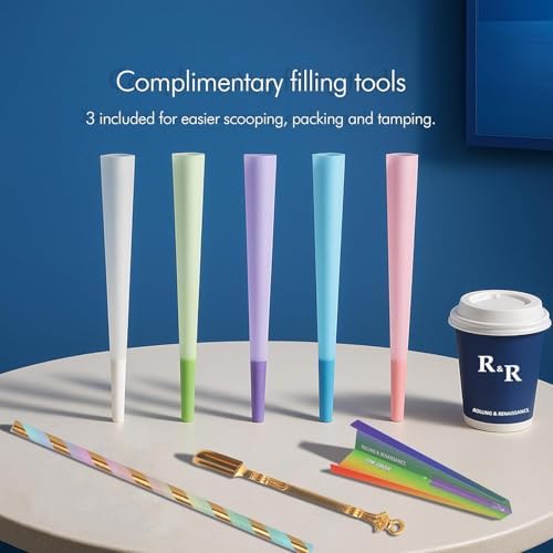 100 Pack Colorful Rolling Papers Pre Rolled Cones King Size - 108mm King Size Pre Rolls Paper with Filter Tips Rainbow cones Filling funnels/Mini Scoop/Packing Sticks