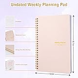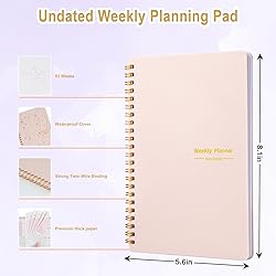 Undated Weekly Planner: A5 size (5.6" x 8.1") spiral-bound planner with durable cover and clean layout for easy organization of daily, weekly and monthly schedules. 52 Weeks Undated Planner: Spacious weekly spread with dedicated sections for daily tasks, goals, and notes to help maintain focus and track important activities. HABIT TRACKER PLANNER: Built-in habit tracking system allows you to monitor and develop positive routines with checkboxes for daily progress monitoring. GOAL SETTING PLANNER: Dedicated weekly focus and goals section helps break down larger objectives into manageable daily tasks for better productivity. VERSATILE FEATURES: Includes to-do lists, weekly focus areas, and weekend planning spaces, making it perfect for both personal and professional use