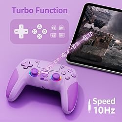 【Important – First-Time Setup】For first-time use, please follow the steps below: PS-5 controller off → Connect with included USB Cable → Unplug Cable → Press Home button→ Select user → Log in 【Hall Effect Joysticks and Triggers】The wireless controller for PS-5 comes with Hall Effect joysticks and triggers, giving you pinpoint accuracy and ultra-fast response control for an edge in your games(Note: Calibration of joysticks and triggers – see video tutorial) 【2 Back Buttons】The PS-5 controller with paddles (with 2 back buttons) support programming or mapping,let you perform complex actions, like combos, without taking your thumbs off the sticks, giving you more control and speed 【Turbo Function】The hall effect controller PS-5 with Turbo function, simply hold down a button, and it will automatically press and release at high speed, creating a rapid-fire effect 【RGB Light】The purple PS-5 controller customizable RGB lighting allows you to change the colors and effects according to the game, adding visual flair and enhancing the mood of your gaming session 【Dual Vibration&Headset MIC】This controller delivers realistic dual-vibration feedback for immersive gameplay, and lets you communicate effortlessly with your teammates through the headset microphone(No built-in microphone; only supports headset microphones)