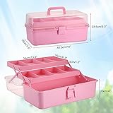 - BTSKY Extra Large 16 Inch 3-Tier Plastic Storage Box with Removable Spacers, Multipurpose Art Crafts Organization Box for Stationery, Sewing Supplies and Cosmetic. High-quality Material - The storage box is selected by premium PP material, which is non-toxic and odorless. It is sturdy and resistant to wear and tear. Transparent Vision - The clear storage box allows you to see what you are looking for at a glance, which saves both time and effort. 3-Layer with Divided Tray & Removable/ Adjustable Spacers - The divided tray designed with 8 adjustable compartments, can accommodate different items, make you easily and efficiently classify and store your small items. WIDE RANGE OF USAGES Craft & Sewing Supplies Organizer - For storing sewing thread, scissors, beads, buttons and other craft accessories. Stationery Storage Box - For storing Markers, erasers, clips, sticky notes, staplers, etc. Cosmetic Organizer - For storing brushes, lipsticks, makeup pads, skin care products, etc. Can be used as household tool box, medicine box organizer/first aid box, ... MORE DETAILS 180-degree Opening Design - Completely open the storage box for easy sorting. Safety Buckle - Solid latch, prevent internal objects from falling out and keep them in one place. Portable Handle -The handled storage case has a handle, which can be easily carried when moving or traveling, camping. Strong Folding Bracket - Supported with movable plastic reinforced side arms, no tip over when open the box. 3 Layer Clear Plastic Dividing Storage Box Handled Craft Supplies Organizer, Perfect Solution for Home & Office Use. Specification: Material: PP Plastic Color: Haze Green, Pink, Beige White, Blue Size: 16"x7.5"x6.3"with 13.4"x6.3"x1.2" trays (Lx WxH) Usage: Sewing Box, Medicine Box, Stationery Box, Art & Craft Supply Organizer, Tool Box Package Included: 1X Plastic 3-Layer Art & Craft Storage Box with Lid Notice: - Please allow slight error due to manual measurement. - Please understand the product colors will be slightly different due to different monitors.