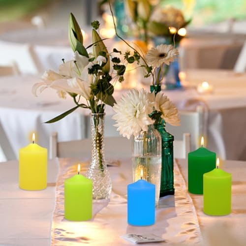 - 【Vibrant Multi-Color Set】Enjoy 12 hand-poured pillar candles (2x3 inches) in rich, decorative colors—perfect for Christmas, dinner tables, or year-round home decor. Each candle complements your space with a stylish pop of color.