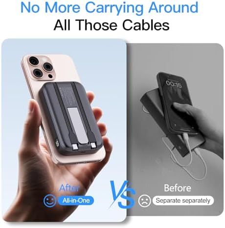- 【4X Fast Charging Power bank】: VTIAEK power bank with built-in 2 cables hits 22.5W fast output, charging 4x faster than old charging banks to boost efficiency. portable power bank supports PD, QC, and more protocols—fully compatible for iPhone 16/15, for Samsung Galaxy, for Google Pixel, tablets, etc. The hassle-free charging solution you need.