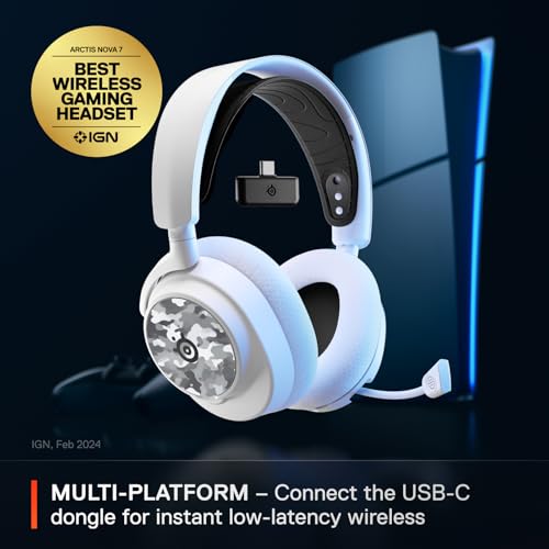 SteelSeries Arctis Nova 7P White Wireless Gaming Headset + Multi-Booster Pack Add-Ons — Mobile App Control — 38 HR Battery — Neodymium Magnetic Drivers — 2.4GHz/Bluetooth — PS5, PC, Switch, Mobile