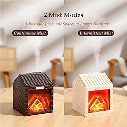 - Add warmth and comfort to your space with this mini fireplace humidifier. Featuring a cozy flame light and realistic chimney-style mist output, this USB-powered humidifier simulates a classic fireplace while moisturizing your air. It offers two mist modes (continuous or intermittent) and up to 8 hours of runtime, helping ease dry skin and breathing discomfort. The compact 200ml design is perfect for personal use in bedrooms, offices, and travel. Equipped with auto shut-off for safety and whisper-quiet operation, this small humidifier also makes a great winter gift for family, friends, or coworkers. Includes two replacement cotton swabs for convenience.