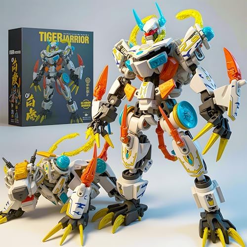 Mech Building Blocks Action Figure Toys, 2in1 White Tiger Transforming Robot Building Set, Converts to Tiger Model, for Adults Kids Boys Ages 8+,455 Pieces