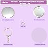 - 50 sets Keychain Supplies List: Full set of keychain supplies materials. Included 50pcs tinplate top shell, 50pcs tinplate keychain bottom cover, 50pcs keychain head, 50pcs transparent plastic films and 50pcs o-ring