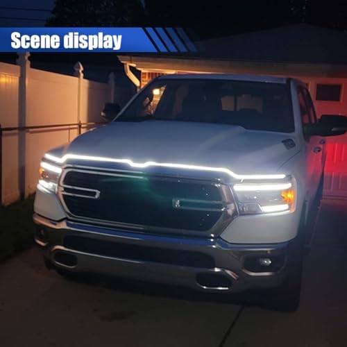 - 【Size Specifications】:The car hood light strip with a length of 70.86 inches, is suitable for 12V vehicles such as cars, SUVs, trucks, and RVs, it can be used as engine hood decorative lights, front grille light strips, daytime running lights, license plate lights, interior ambient lights, pedal lights, or marine light strips, and even for home decor and camping, meeting diverse lighting and decoration needs.