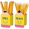 - Comprehensive Package Inclusion-you don't have to worry about not having enough space for your stationery, with our offer, you get 2 pencil shaped pencil holders in 2 styles, one is printed with the word [sharp] in sharpened pencil style, and the other is [dull] in unsharpened pencil style, which can double the storage and half the clutter