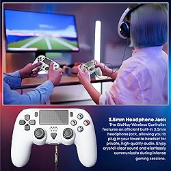 - Universal Compatibility Take control of your game with the GioMay Pro Wireless Controller, designed to work seamlessly with all PS5 consoles, including PS5 Slim and Pro. It is also compatible with PC and Steam, giving you flexibility across multiple platforms.Wireless & Wired Modes Play your way with stable Bluetooth wireless connectivity or switch to USB-C wired mode for instant plug-and-play action. The built-in 600mAh rechargeable battery ensures hours of gaming without interruptions, and fast charging via USB-C keeps you ready for the next match.Enhanced Gameplay Control Feel the action with dual asymmetric vibration motors that provide dynamic rumble effects, combined with a 6-axis motion sensor for precise motion control. The responsive touchpad ensures smooth navigation and adds extra functionality in compatible games.Audio Options for Communication Play with added sound effects through the built-in speaker, or connect your headset via the 3.5 mm jack for clear voice chat and detailed audio during wired sessions.Customization & Competitive Edge Gain an advantage with programmable rear buttons (M1/M2) and the Turbo function, perfect for rapid-fire actions in FPS, racing, or fighting games. Tailor your setup to your playstyle and react faster in competitive matches.Ergonomic Design for Comfort Engineered for long gaming sessions, the controller features an anti-slip ergonomic grip, responsive buttons, and durable joysticks with included thumb grips. Its lightweight build keeps you comfortable while maintaining precise control.