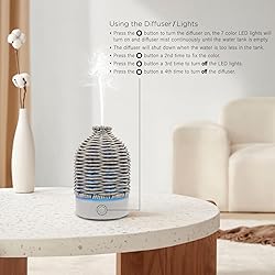 【PREMIUM MATERIAL】: Experience the natural beauty of our rattan diffuser, featuring a traditional wicker weave design.compact and portable,100ml water capacity,easy to clean and space saving.Diffusers for home,wood grain base,suitable for any home and office decoration. 【MULTI-FUNCTION AROMATHERAPY DIFFUSER】: Rattan diffuser realizes three functions of humidifier, aromatherapy essential oil diffuser and night light.With 7 different LED lights,you can choose to fix to different light colors by pressing the button multiple times. 【QUIET DESIGN】: Diffusers for essential oils,mute operation,can soothe the mood,relieve stress,promote sleep,stable mist during reading,work,yoga,let it run silently.Air diffuser for essential oils with automatic shutdown function,open at night,without worrying about overheating,to meet your different needs. 【IDEAL GIFT】: Handcrafted Rattan diffuser is an ideal gift for elders,lovers,and friends.Valentine's day,Christmas,birthday,anniversary,you can use cool mist diffuser as a gift gives to them,will be them very happy when they receive gifts. 【WIDE APPLICATION】: Quiet diffuser is very suitable for home,office,gym,studio,etc,just fill up with water and drop in essential oils,you can easily enjoy the aroma.Room diffusers are suitable for anyone to use.