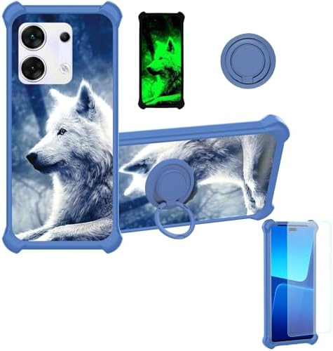 Case Compatible for OSCAL C20 pro Phone Case Cover [with 1* Tempered Glass Screen Protector][Hard PC + Soft Silicone][Ring Support] [Luminous Effect] YGL-LANG