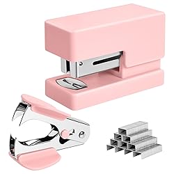 Compact & Portable Design – This mini stapler is ultra-lightweight and fits easily in pencil cases, bags, or small drawers. Perfect for students, travelers, and office use Strong Stapling Performance – 25 sheet stapling capacity, jam-resistant operation Stylish & Durable Build – Made from high-quality ABS plastic + steel for long-lasting durability Value Package: Package includs a mini stapler, a staple remover, a box of 830 standard 1/4" staples Great Gift & Travel Essential – A must-have for school, office, or crafting