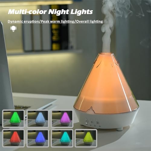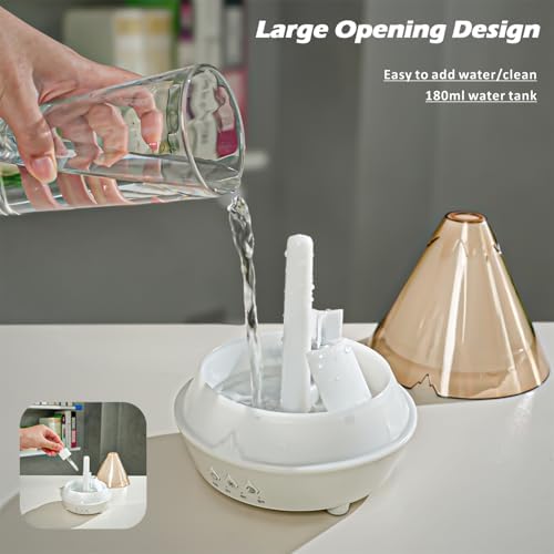 Volcano Aromatherapy Diffuser 180ML Essential Oil Diffuser Small Humidifier with 7 Colors Night Lights,Remote Control for Bedroom,Office(White)