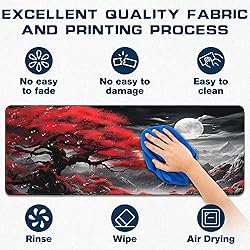 EXCELLENT QUALITY: The gaming mouse pad adopts double-sided one-piece design, the front side uses smooth, soft and comfortable excellent material, the reverse side uses durable non-slip rubber base, with precision edge stitching, not only makes the mouse pads for desk more beautiful and durable CLEAR PRINTING AND BRIGHT COLORS: The desk pad mat uses the latest printing technology, even after many times of washing can keep the surface pattern of the keyboard pad clear and bright EXTRA LARGE SIZE: The mouse pad large size is 31.5" x 11.8" x 0.12" (80 x 30 x 0.3cm), the large mouse pad for desk extra large size not only can protect the desktop well, but also for your game and work to leave enough space to operate SUPER SMOOTH AND EASY TO CLEAN: The surface of the gaming mousepad is extremely smooth, allowing you to experience a silky smooth mouse sliding experience, and when cleaning the keyboard mat, you only need to use paper towels or wet paper towels to wipe clean to complete the cleaning WIDELY APPLICABLE: This beautifully crafted and patterned desk mouse pad is not only a practical tool for your office, game and home, but also a beautiful decorative piece, the mousepad gaming that brings you a better experience in your office and gaming environment