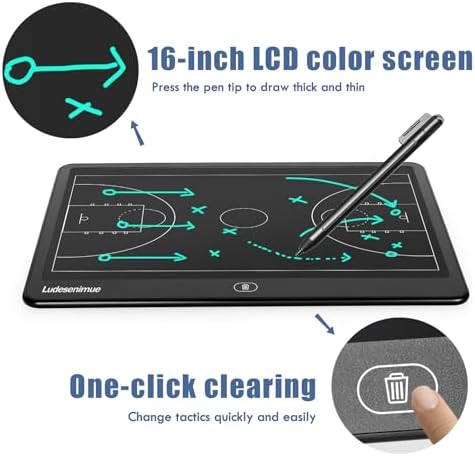 - LCD Tactical Screen with High-Visibility Writing: Plan plays with precision on this 16 inch LCD writing board, featuring glare-free, non-backlit technology for clear visibility even under bright gym lights. Includes two smooth-writing stylus pens for effortless diagramming—perfect for team huddles, practice sessions, and game-day strategies.