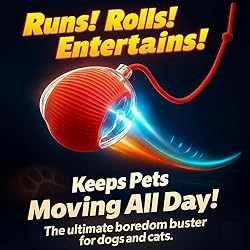 - Interactive Electric Automatic Rolling Moving USB Rechargeable Self Activated Play Stimulation Toy Smart Chase Teaser Ball with Speedy Tail Rope for Bored Adult Indoor Cats and Dogs, Red. Our Interactive Cat Ball and interactive Dog Ball rolling toy ball is a smart rolling ball with a long rope tail is the ultimate entertainment for furry Cat/ Small dog best friend. This interactive dog toy ball/interactive cat rolling toy can attract your pet's interest to play with,keep your pets busy and won't feel bored.Start the moving dog ball/cat interactive rolling toy,the toy has 3 modes to choose,Fast,Slow and interactive/sprorts mode supports the ball running erratically on the tiles, wood, low carpets, and even high pile carpets rarely getting stuck in corners, helping you easily entertain high-energy cats/small dogs for hours.Auto timer working times and motion activated will free your time to do your own work.Rechargeable cat toy is more convenient,don't worry to change the battery often. High-quality and friendly material is safe to play with, helps enhancing pet's physical health and mental capibilities. Unleash the fun with the ultimate interactive dog ball ⚽ – the perfect solution for keeping both cats 🐾 and dogs entertained and active! Whether you're looking for an engaging dog toy 🦴 for large dogs, puppy toys 🐾, or an interactive cat toy for your curious kittens, this pet toy is designed for pets of all sizes and ages. This smart cat toy ball 🏀 will captivate your pets with its dynamic movements, encouraging your furry friends 🐾 to chase, pounce 🐾, and exercise 💪. With advanced motion sensors 📡 and an obstacle avoidance system 🚧, the interactive dog toy is perfect for both dogs and cats 🐾, including indoor cats 🏠 who love to stay active. Whether you're looking for a cat toy 🏀 for your playful kittens 🐾 or a long-lasting dog ball ⚽ for your energetic dog, this interactive toy provides hours of engaging play ⏰. Specifically designed to stimulate your pet’s natural instincts, the interactive dog ball ⚽ moves like a robot, shifting direction just like a car 🚗 would, providing your dog or cat 🐾 with endless chase opportunities. It’s a great way to keep your pets physically active and mentally engaged 🧠, whether it's a dog ball ⚽, a cat ball 🏀, or a toy that promotes natural hunting behaviors. Inspired by a flappy bird cat toy, the ball mimics the movements of small prey, making it irresistible to your cat 🐾. Made for both cats 🐾 and dogs, the design is ideal for those looking for a smart cat toy ball 🏀 that adapts to your pet’s needs. This is a must-have for anyone with cats 🐾—especially indoor cats 🏠—or large dogs who need a durable, high-quality dog toy 🦴. The interactive dog toy 🏀 is perfect for enhancing your pet's play routine, offering 3 customizable speed settings ⚡, ensuring fun playtime for all. This versatile interactive dog toy 🏀 doesn’t just stop with dogs and cats 🐾. It's perfect for puppy toys 🐾, kitten toys, and even cat toys for kids, making it an excellent choice for families with multiple pets 🐾 and children. Easy to clean 🧽 and pet-safe 🐾, this cat toy is crafted from durable, eco-friendly materials 🌱 that ensure safe play for pets of all ages. The interactive cat toy 🐾 will quickly become your cat's favorite ❤️, and for dogs, the constant motion and dynamic play keep them engaged for hours ⏳. Looking for cat toys 🐾 for indoor cats 🏠 interactive or an all-in-one solution for dog toys for large dogs? This interactive dog ball ⚽ works for both, keeping your pet stimulated and entertained 🎉. Plus, the ball mimics a flappy bird cat toy's movements, making it irresistible to cats 🐾 who love a little extra challenge 💪 in their playtime. Whether you're engaging your cat 🐾 with a cat tail 🐾 movement or mimicking a robot with its smart motion, your pet 🐾 will have fun all day. With easy-to-use features 🛠️ and a rechargeable design 🔋, the interactive dog ball ⚽ ensures no more hassle with batteries 🔋. Plus, the smooth surface 🧼 makes it easy to clean 🧽 and safe for pets 🐾, including puppies, kittens. Perfect for your indoor cats 🏠, this toy can be paired with a cat tunnel 🐾 for added fun 🎉 and stimulation 💡. Whether your cats 🐾 are playing with this ball ⚽ on their own or with other toys, it's sure to keep them entertained and active for hours ⏳. The interactive dog toy is great for any pet 🐾 that loves a good chase, whether you have a cat 🐾 or a dog! Interactive Cat Toys for Indoor Cats, 2025 New Smart Interactive Pet Toy Ball, Smart Rolling Ball for Dogs & Cats, Cat Toys for Bored Indoor Cats (Red) ⚠️ PLEASE NOTE: The actual product may vary from the images, size dimensions and others details mentioned due to differences in lighting, screen settings, manufacturing updates, or other reasons. Images maybe AI-generated, AI enhanced, etc, for illustration purposes. The product title, bullet points, descriptions, and product details also include our recommendations which may vary based on personal preferences and there might be some errors. If you have any questions, feel free to contact us. 📨. ONLY FOR PETS