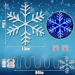 CHRISTMAS WINDOW DECORATIONS: Featuring high-quality acrylic construction, these elegant snowflake Christmas lights provide crystal-clear brilliance to create a magical holiday ambiance. They cast a warm and cozy sparkle against your frosty windows, instantly transforming your home's seasonal atmosphere 8 MODES & TIMER FUNCTION: Our christmas decor offers 8 mesmerizing lighting modes, from a gentle twinkle to a vibrant glow, to dazzle your family and guests. The built-in 6-hour timer function enhances convenience and helps save battery life BATTERY OPERATED: Experience complete decorating flexibility with these battery-operated lights! Powered by 3 AA batteries (not included), they can be installed anywhere without cord constraints. Use the included hooks to create stunning Christmas wall decor on windows, mirrors, doors EASY HANGING: Seconds for holiday decorations! Our snowflake decorations come with pre-drilled hanging holes for easy hanging. Simply tear open the package and attach the included hook to any smooth surface to hang. Light up holiday magic in an instant SNOWFLAKE LIGHTS: More than just christmas window lights, this set is perfect for walls, doors, mantels, and trees. Its battery-operated design makes it ideal for both indoor and outdoor use. A wonderful and ready-to-gift choice for anyone celebrating the season