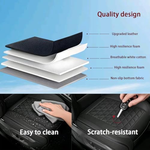 - Premium Material: The car seat cover is made of high-quality leather, with clear 3D texture on the surface. Leather material has great wear and scratch resistance, long service life, and is not easy to be damaged by daily use. The leather surface has a breathable microporous structure, which can quickly dissipate heat, and you won't feel hot and sweaty even after a long ride. The interior is filled with soft sponge, which fits the human body curve and makes for a comfortable ride.