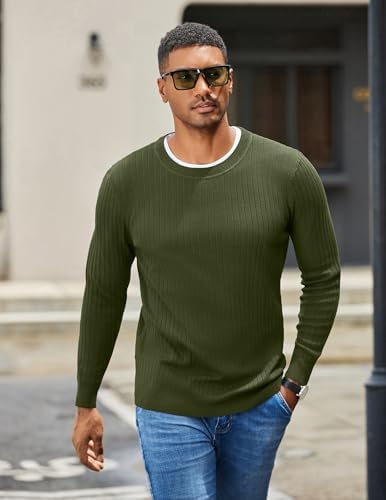COOFANDY Men Crew Neck Knit Sweaters Lightweight Knitted Sweaters Long Sleeve Pullover Sweater Casual Dress Sweater