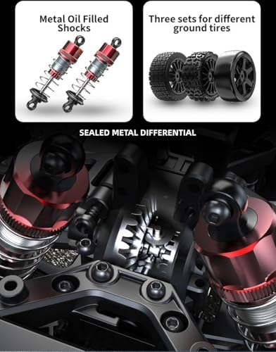 - 5.【Full Metal Hydraulic Shock Absorber】We went to great lengths for the suspension of this RC car. It is equipped with full metal hydraulic shock absorbers to provide you with the smoothest driving experience ever. Say goodbye to rough roads and hello to pure driving fun!