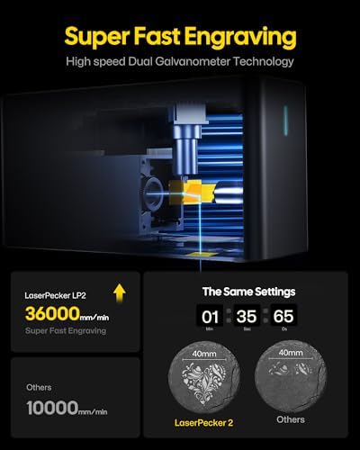 LaserPecker LP2 (Basic) Laser Engraver Cutter, 60W Galvo Laser Handheld Engraver High Precision 0.05mm Compressed Spot, 36000mm/min High Speed Portable Engraving Machine for Wood Kraft Paper Leather