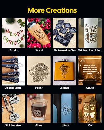 - Functional & Widely Used – Max engraving size 100x100mm without the 3rd axis(roller), LaserPecker 2 CAN engrave: paper, cardboard, wood, leather acrylic, Oxidized/painted aluminum, steel etc,. CAN’T engrave: gold,silver,copper,brass or reflective materials. Cutting: Wood, paper, acrylic, leather thickness within 5mm.
