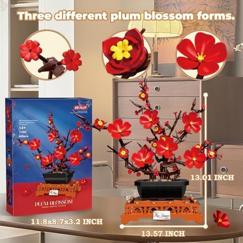 - Ideal Gift: This 669-PCS plum blossom building block set blends fun and beauty, a thoughtful gift. Packaged in a bright box with detailed instructions, it suits kids aged 14+ and adults, like daughters, nieces, partners and plant lovers. Perfect for Easter, Christmas, birthdays and New Year.