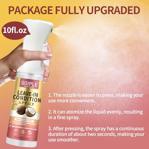 - Upgraded 10 OZ Packaging: This leave in conditioner and heat protection spray now comes in a convenient 10 oz bottle, upgraded with a premium atomizer nozzle. The fine mist ensures even coverage across all hair lengths."