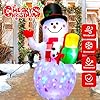5FT Christmas Inflatables Snowman with Rotating Lights, Blow Up Snowman Outdoor Decoration LED Lighted Snow Man Christmas Decor for Yard Patio Garden Lawn Xmas Holiday Indoor Party