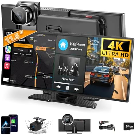Largest 11.5 inch Wireless CarPlay Screen for Car, A-pple CarPlay & Android Auto HD Touchscreen with 4K Dash Cam/1080P Backup Camera/Navigation/Bluetooth/Voice Control/FM/Mirror Link,for All Vehicles