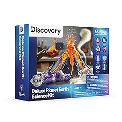 - Explore the Wonders of Planet EarthDive into the world of science with the Discovery™ Deluxe Planet Earth Science Kit. With 65 total experiments—25 hands-on activities included in the kit and 40 DIY experiments using common household items—this kit offers endless opportunities to explore the forces that shape our planet.Learn Through Hands-On ActivitiesFrom erupting volcanoes and glowing tornadoes to growing crystals and creating fossils, each activity is designed to teach kids the "why" behind the "wow." Clear instructions and built-in fun facts turn each experiment into an exciting science lesson.Packed with Real Tools and MaterialsThe set includes volcano molds, excavation bricks, instant snow, crystal solutions, glitter, and more—plus bonus tools like a mixing bowl, goggles, and a measuring cup for safe and realistic science fun.STEM-Approved Learning AdventureSupport STEM education at home with experiments covering geology, meteorology, chemistry, and physics. It's the perfect kit for young scientists ready to make big discoveries. Product FeaturesIncludes 25 kit-based experiments and 40 bonus DIY activitiesReal tools and safe materials for engaging science playTeaches earth science, chemistry, weather, and physicsFun facts and science behind each experiment includedDesigned for kids ages 8+ with adult supervisionPackage IncludesVolcano mold, excavation bricks, crystal powder, glitter, goggles, mixing tools, and morePrinted instruction manual with 63 experimentsSafety guide and DIY bonus experiment ideas Start your science adventure today with 63 exciting experiments that spark creativity, learning, and discovery!