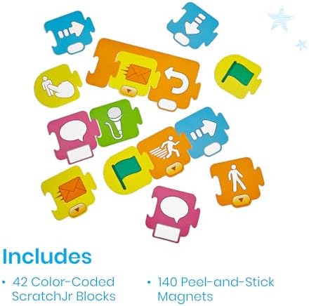 - DEVELOPED IN PARTNERSHIP WITH THE SCRATCH FOUNDATION: Includes 30 Color-Coded ScratchJr Blocks, 140 Peel-And-Stick Magnets
