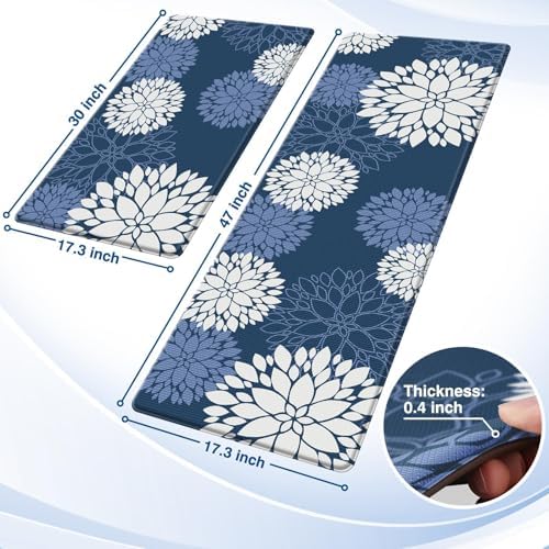 Kitchen Mats, 2PCS Non-Slip Cushioned Rugs, Anti-Fatigue Waterproof Floor Rug, Washable Standing Desk Mat, Home Laundry Office Apartment Decor and Accessories (17.3" ×47" +17.3" ×30"-Blue)