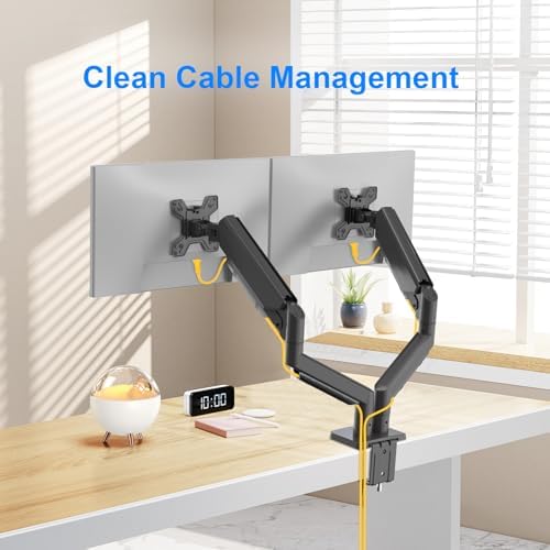Dual Monitor Stand for 13 to 32 inch Screens, Gas Spring Monitor Arm with Swivel, Tilt, Rotation, Height Adjustable, Desk Mount with C-Clamp and Grommet Base, Each Arm Holds 4.4 to 19.8lbs Screen