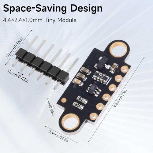 - Accurate Distance Measurement: The VL53L0X ToF LiDAR Sensor uses advanced Time-of-Flight (ToF) technology and a SPAD array (Single Photon Avalanche Diode) to measure absolute distance up to 2 meters with 1mm resolution, even on low-reflectivity targets. Its ultra-compact 4.4x2.4x1.0mm module integrates a 940nm VCSEL infrared light source, making it ideal for space-constrained applications like robotics, smart home devices, and IoT systems.