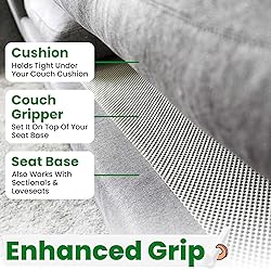 KEEP COUCH CUSHIONS FROM SLIDING - ECOHomes non slip grippers for couches and sofas puts a halt to your couch or sofa cushions from sliding all over the place. Keep your couch cushions in place now with these stopper pads! ENHANCED THICKNESS & STRONGER GRIP - The anti-slip couch grippers have been beefed up with thicker material for a grip that's more anti slip than before. Your seat cushions won't budge, no matter how you sit or even if you've got kids bouncing around! QUICK & EASY SET UP - Just place the seat cushion gripper beneath your couch cushions and let it do its thing. Plus, you can take it outdoors and use it on the patio to keep patio cushions from sliding around! KEEP COUCH CUSHIONS FROM SLIDING - These double sided hook and loop tape roll with adhesive firmly secure your couch cushions and prevent your sofa cushions from slipping. Stop couch cushions from sliding now when you start using these couch cushion slide stoppers! HEAVY DUTY NON SLIP GRIPPERS - Trim the self stick anti slip gripper tape rolls according to the length you require. You can also use it for various craft, home DIY, industrial projects to mcount, secure and organize objects around the house!