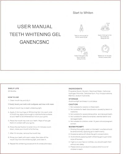 - Satisfaction Guaranteed:This product should be used with dental trays for approximately around 16 minutes .For optimal results, use twice daily for 7-10 days and is suitable for adults 。The gel is certified by the U.S. FDA, so you can purchase with confidence.If you’re not fully satisfied, contact us immediately—we’re here to help!