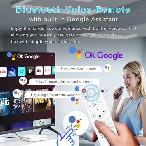 - Voice Control Convenience – Use the included Bluetooth voice remote to search, control playback, or check the weather hands-free with Google Assistant, making your smart TV box even easier to navigate.