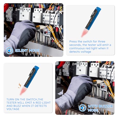 - Clear Visual and Audible Alerts:Stay informed with bright LED red lights and audible warning sounds when voltage is detected. The voltage tester features a customizable alert system—press and hold the button for 3 seconds to disable the sound while maintaining the visual warning. This flexibility ensures you can adapt to different work environments and needs.