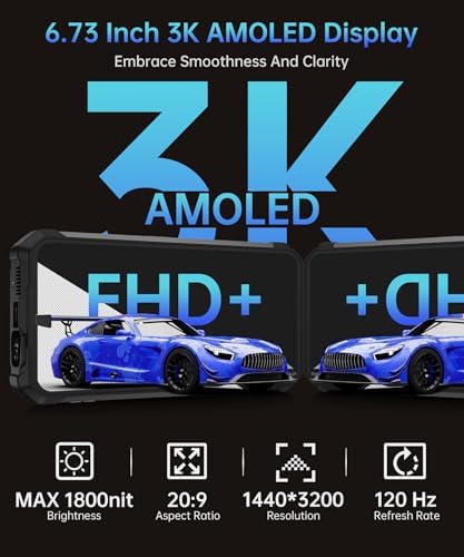 • 【6.73-inch AMOLED 120Hz Display】8849 Tank 4 Pro IP68 waterproof cell phones feature a 6.73-inch screen with 1440*3200 resolution, delivering an IMAX-level viewing experience. With ultra-crisp visuals, every gaming detail is rendered with pinpoint clarity. Its up to 1800 nits high brightness ensures perfect visibility even under direct sunlight, while the 120Hz ultra-smooth refresh rate gives you a competitive edge— Enables stunning clarity and professionalism in every frame