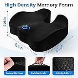 Premium Memory Foam: SofterCharm seat cushion measure with 18.11”×16.14"×5.28" and it is made of 100% pure memory foam that fits your body curves perfectly. The ergonomic U-shape supports the coccyx, perfect for long workdays or road trips Portable Handle& Easy to Clean: Our seat cushion equipment with a portable handle, making it easier to transport. The zippered and fleece cover is breathable and machine-washable—simply remove it and throw it into the washing for rapid cleaning Non-Slip Bottom: The anti-slip bottom keeps it in place on chairs, couches, wheelchairs, and yoga floors. Ideal for office workers, truck drivers, travelers, or anyone who spends long periods of time sitting—use it wherever comfort is required Multi-Scene Versatility: Fits all seats, including office, automotive, airplane gaming, bleachers, and wheelchairs. Ideal for business trips, sporting activities, and senior use. Whether you work, commute, or relax Safe & Thoughtful Gift: It is made of high-quality fabrics that recover rapidly and retain their shape well. A fantastic birthday or holiday gift for family, friends, or coworkers—everyone will appreciate the instant comfort it offers