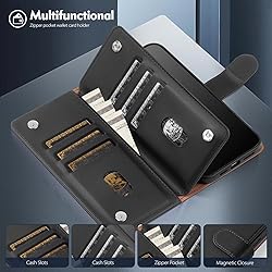 - Compatible with iPhone 17 Pro Wallet Case with Card Holder[RFID Shielding]PU Leather Flip Cover Protective Case with Credit Card Slot Holder Kickstand Function Shockproof TPU for Men and Women