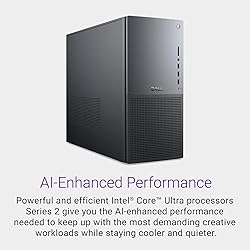 POWERFUL PERFORMANCE: Featuring the Series 2 Intel Core Ultra 9 285K Processor with 24 cores, 36MB Cache, 3.7 GHz up to 5.7 GHz frequency provides optimal performance for a distributed workload. STAY PRODUCTIVE: Equipped with 32GB DDR5 RAM | 4TB PCIe NVMe M.2 Solid State Drive | Enjoy advanced compatibility and greater bandwidth with lower power consumption. OS & ACCESSORIES: This Dell PC runs on OS Microsoft Windows 11 Pro | Dell Multimedia Wired Keyboard & Wired Mouse | Intel Wi-Fi 7 BE200 (2x2) 802.11ax Wireless LAN and Bluetooth GRAPHICS: The NVIDIA GeForce RTX 5070 12GB GPU delivers high-performance gaming and creative power with advanced ray tracing, DLSS 4 AI frame generation, and ultra-fast GDDR7 memory powered by the Blackwell architecture. MODERN DESIGN: Optimize your productivity with the 2025 Dell Tower Plus EBT2250 computer desktop tower with tone-on-tone colors, an aluminum front bezel with a refined bead-blast finish and a minimalistic design. | 1-Year HV Supply Onsite Service