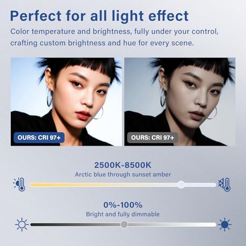 - LED Panel has 224 led bead. Dimmable range of 2500K to 8500K and brightness control from 0-100% by turning a knob. LCD screen displays clearly, monitoring of brightness, color temperature, and battery power. 2200lux and the CRI 97+ ensures accurate color reproduction. The variety of color modes and brightness levels helps object look best in different lighting conditions