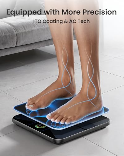 - Better Tech, Better Measurements: This body composition scale, coated in high-conductivity ITO, utilizes dual-frequency electrodes and AC technology to ensure every scan of your body is done with pinpoint accuracy.