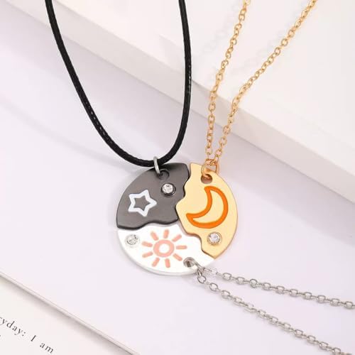 Celebrate the special bonds of friendship with this delightful 20-set collection of BFF pendant charms, perfect for creating meaningful jewelry pieces. Each set features intricately designed heart-shaped pendants that can be shared between 2 to 5 friends, making them ideal for groups of different sizes. The charms come in various eye-catching designs including yin-yang patterns, puzzle pieces, and decorative hearts adorned with charming motifs like butterflies, rainbows, and celestial elements. Made from durable metal with both silver and gold-tone finishes, these pendants feature beautiful details enhanced with crystals and colorful enamel work in pastel shades of pink, turquoise, and black. Each piece is thoughtfully crafted with 'Best Friends' engravings and complementary symbols, creating perfect matching sets when combined. These versatile charms are ready to be transformed into necklaces, bracelets, or other DIY jewelry projects, making them an ideal choice for expressing friendship in a personal and creative way. The collection includes 54 total pieces that can be mixed and matched to create unique combinations for your friend group.